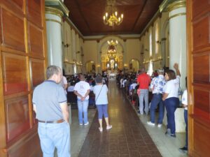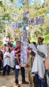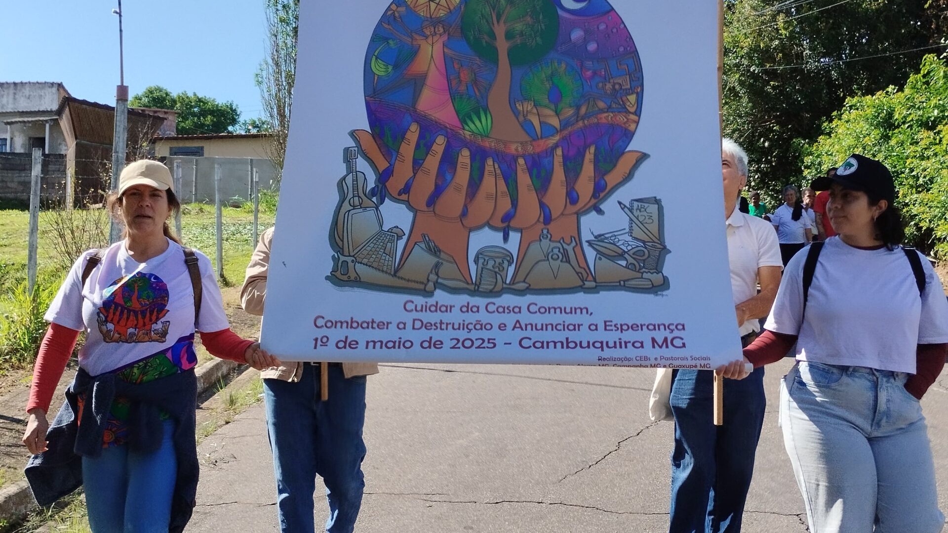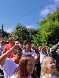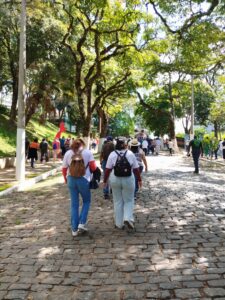A caminhada teve início por volta das 9h, com concentração no pátio da Igreja do Rosário. Logo no início, Carlos, representante da Comissão Vida Plena da Arquidiocese de Pouso Alegre, fez uma fala destacando a celebração da água realizada recentemente na arquidiocese. Na sequência, uma representante da Diocese de Guaxupé também compartilhou reflexões sobre as ações em sua diocese.