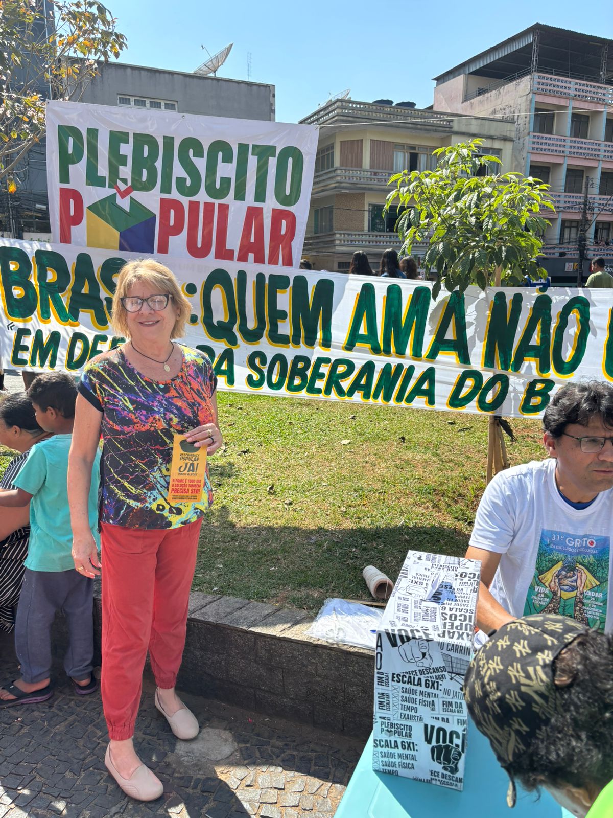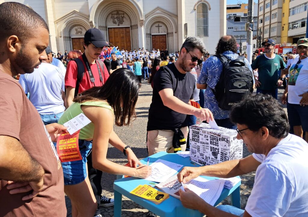 Este ano os envolvidos na organização do Grito coletaram votos para o Plebiscito Popular que acontece em todo o país. A iniciativa realiza uma consulta em âmbito nacional sobre a redução da jornada de trabalho, o fim da escala 6×1 e o imposto para os super-ricos.
